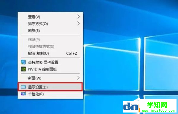 第一步:桌面空白处,右键选择【显示设置】,如下图所示。