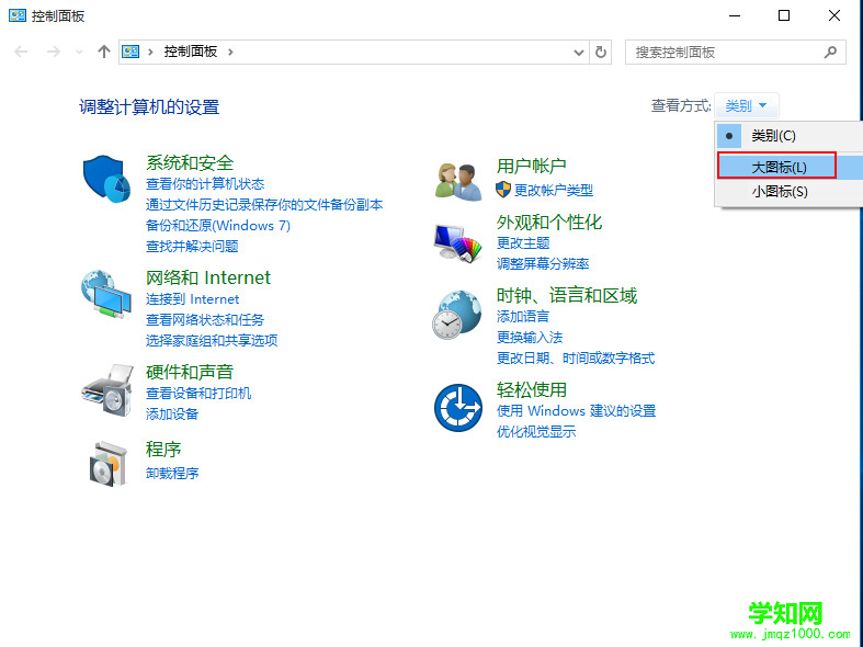 2、在 控制面板 中,把查看方式的类别选择为 大图标 。