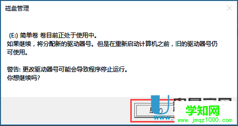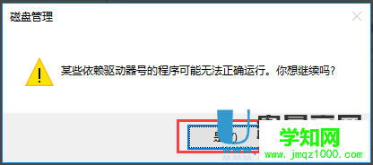6、注意这里会提示 某些依赖驱动器号的程序无法正确运行,你想继续吗 意思是你之前如果在E盘符的状态下安装了程序的话,如果改成D盘符就会导致这些程序不可用,如果你没安装到E盘里就不用担心,直接点击是即可。