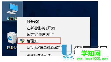 1、首先在桌面上点击鼠标右键此电脑,在弹出的菜单里点击 管理 选项