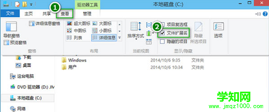步骤一、点击打开win10系统桌面上的 这台电脑 ,或者直接开启文件资源管理器也可以,在窗口上方菜单中切换到 查看 ,然后勾选 文件扩展名 项。