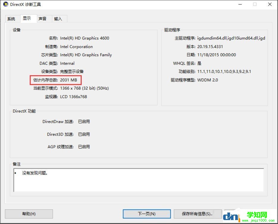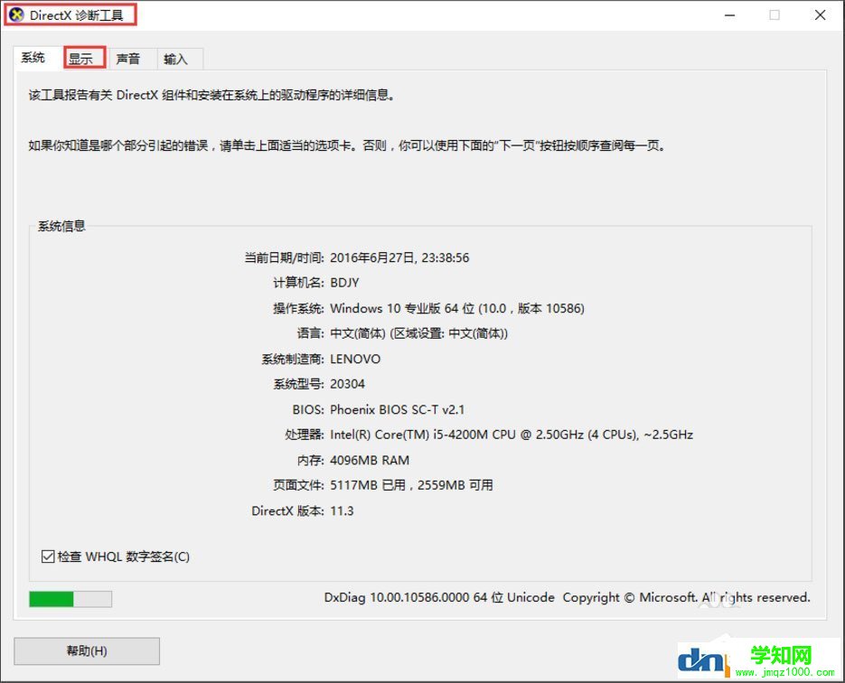 2、接下来点击【确定】按钮,即可打开DirectX诊断工具;