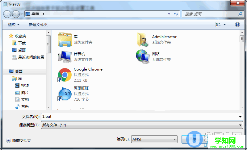 保存的时候记得选一下所有文件,这样才不会被保存为txt,如下图,把bat后缀加上。