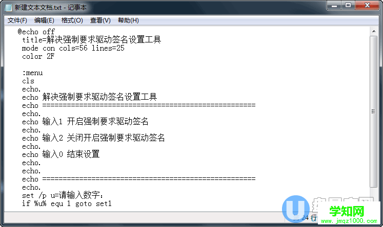 复制以上代码到记事本里然后保存为 1.bat,然后执行这个bat就强制关闭win10要求驱动签名了。
