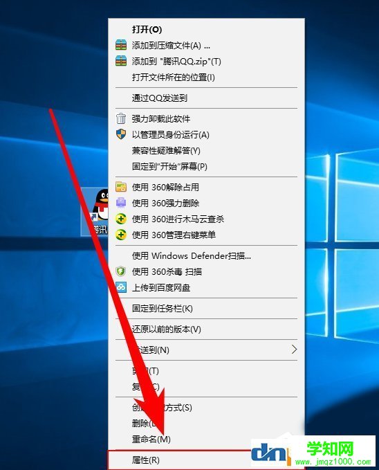 Win10修改桌面快捷方图标步骤方法 第三步,选择底部的“属性”选项。