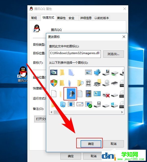Win10修改桌面快捷方图标步骤方法 第九步,回到属性提示框后再次点击“确定”即可。