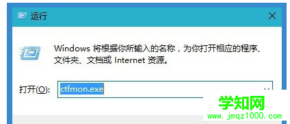 二、如果输入法图标消失,只能输入英文而不显示输入框,可尝试重启输入法来解决。我们按住键盘上的Win+R,接着在运行中输入 ctfmon.exe ,按回车结束操作。