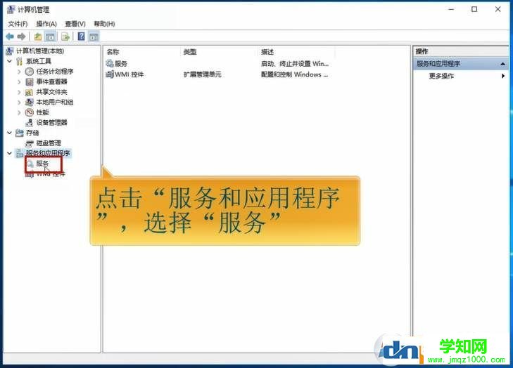 2、点击“服务和应用程序”,选择“服务”;
