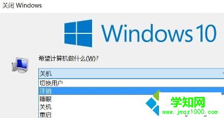 4、操作完成后按下按下【win+d】组合键切换到桌面,然后按住键盘“Alt+F4”组合键,选择“注销”计算机,然后点“确定”注销计算机,注销后重新登录即可解决问题正常使用开始菜单。