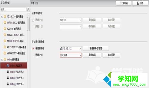 5、如果需要多个监控摄像头录像,可以复制其他监控点,录像计划以及服务器录像计划,最后打钩保存即可