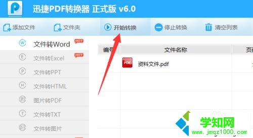 2、接着切换到“文件转Word”选项卡,点击“开始转换”按钮,如图PDF是加密文档,需要输入对应的密码;