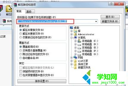 2、如果选中“解压文件…”,则会弹出解压选项框,可以修改解压文件的存放位置、更改方式等。修改后,点击确认。打开rar格式文件后,会在指定的存放位置;