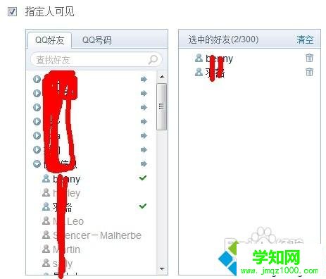 这里可以将QQ好友中的指定好友,添加到图中的右边部分,那么只有在右边部分的好友才有权限查看你的空间。