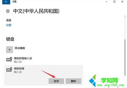 3、再点击“微软拼音”下的“选项”;