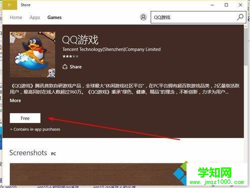 3、搜索到之后,点击【free】开始下载qq游戏。