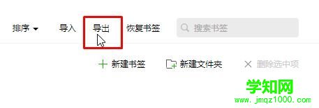 2、在书签整理界面右上角点击【导出】;