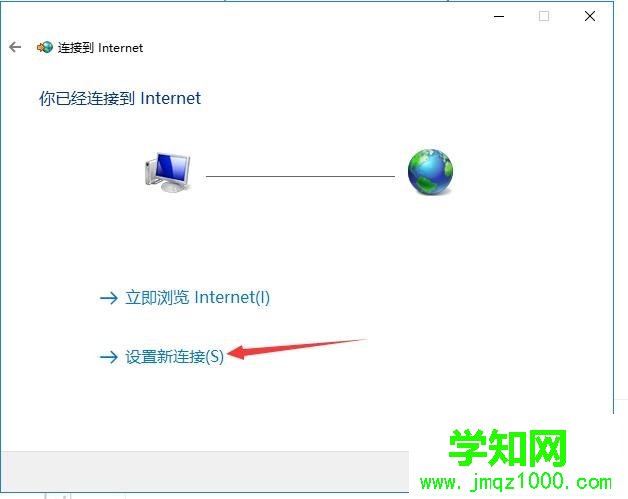 接着在弹出的 连接到internet 窗口,选择 设置一个新连接 。如图1-3所示。