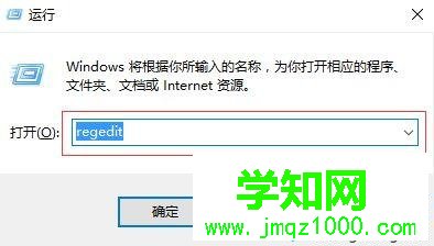 1、按window键+R,输入regedit;