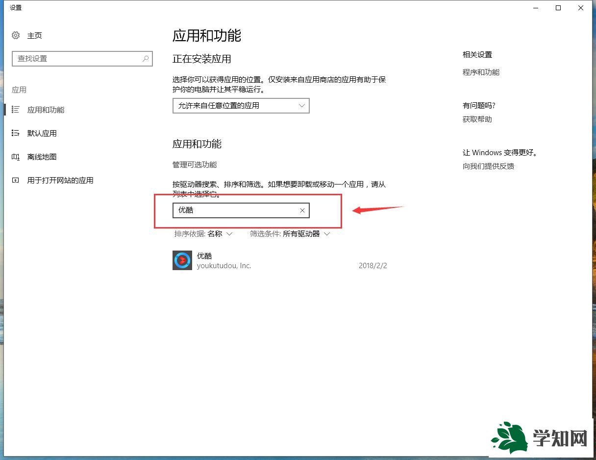 应用程序的列表,如果应用程序列表比较多,可以在搜索框中输入需要卸载程序的名称即可;