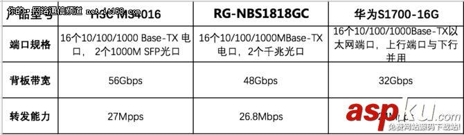 流量的处理,主要体现在端口规格、转发能力、背板带宽上,下面就来看看这三款交换机的参数表现: