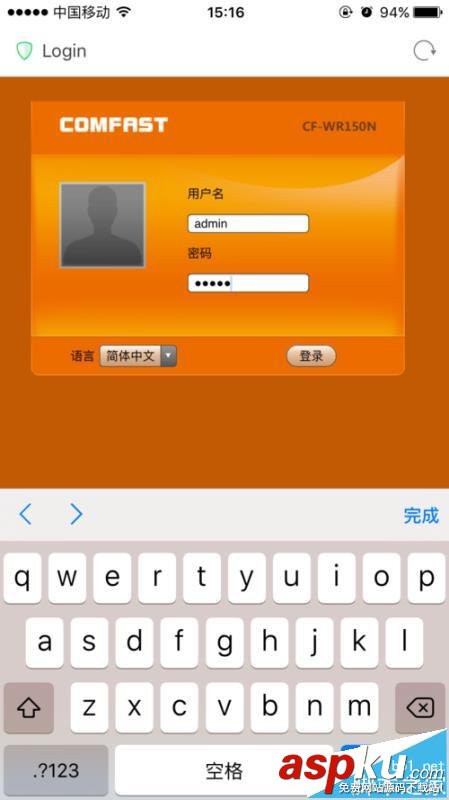 3、出现登录界面,用户名是admin,密码也是admin。输入后点击登录,如果出现是否保留密码,是、否都可以。