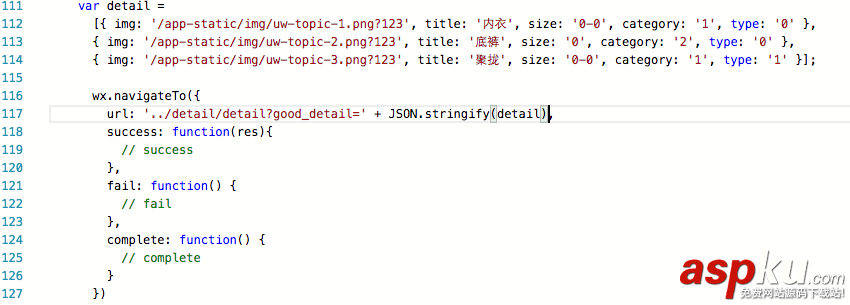 这里将good_id=16 参数传入detail页面, 然后detail页面的 onload方法内接受.