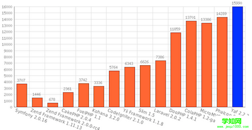 最后发一个框架性能图片 外国测试的,机器配置不详,好像是 ?分钟内的请求次数 用问号表示不知道几分钟,估计是1分钟