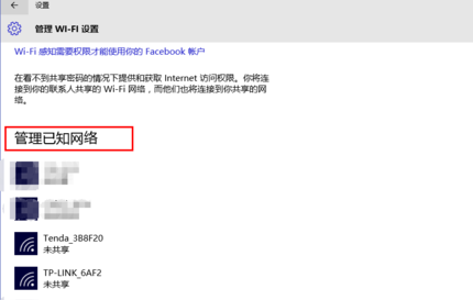 4、在管理wifi设置页面中找到管理已知网络