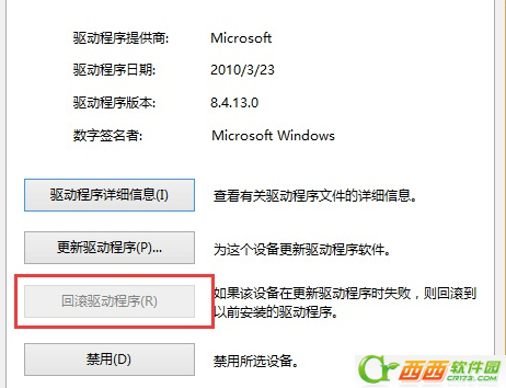 3、打开设备属性后,切换到“驱动程序”标签页,然后点击“滚回驱动程序”按钮;(如果没有更新过驱动,那么这个按钮将是灰色的无法点击)