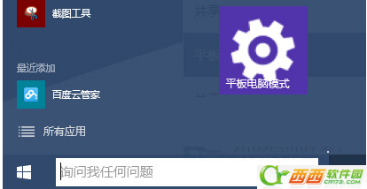 2、点击该图标即可把“平板电脑模式”设置项固定到Win10开始菜单中