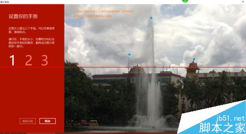 4、现在按自己喜好选择一张图片作为密码图片,选择后在图片上选择三个点作为解锁密码