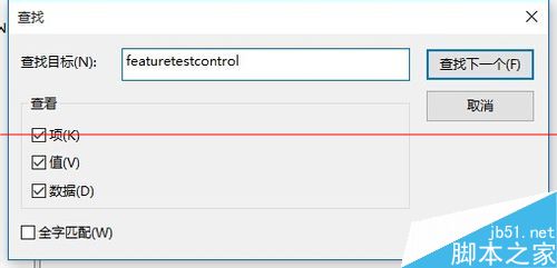 2、搜索注册表featuretestcontrol
