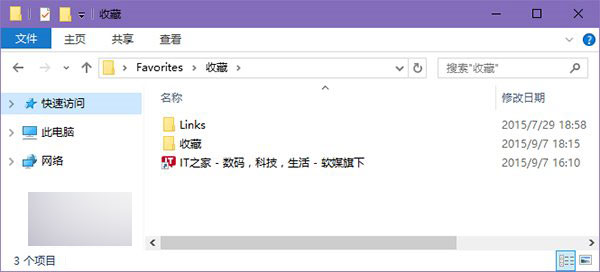 • 将备份的收藏夹复制到%UserProfile%Favorites目录中(即IE收藏夹)。