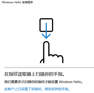 这样你就可以在你的win10系统中设置指纹登陆了哦,此账户已经设置了该指纹,可以尝试用其他手指。