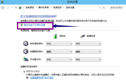 6、选择更改当前不可用设置,如下图所示