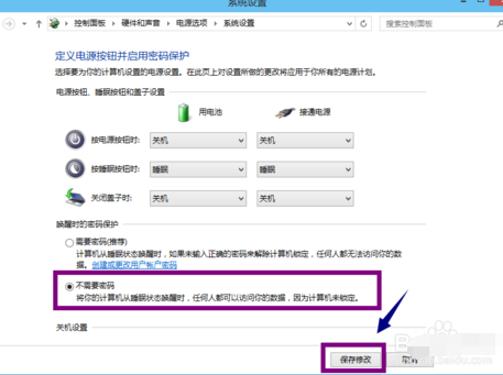 7、勾选下方的不需要密码,点击保存修改按钮,如下图所示