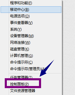 2、在弹出菜单选择控制面板,如下图所示