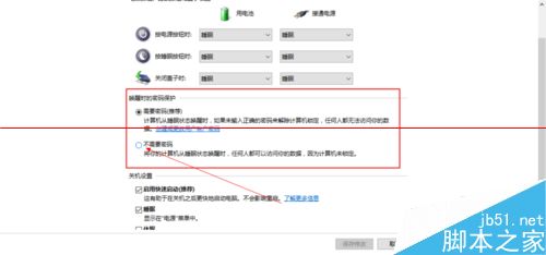 7、在“唤醒时的密码保护”下,将“需要密码(推荐)”更改为“不需要密码”。