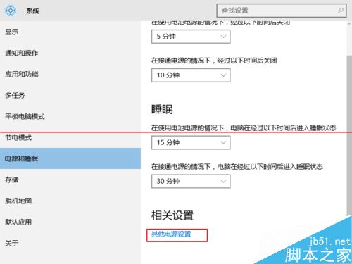 4、设置好睡眠和屏幕关闭时间以后,点击下方的其他电源设置。