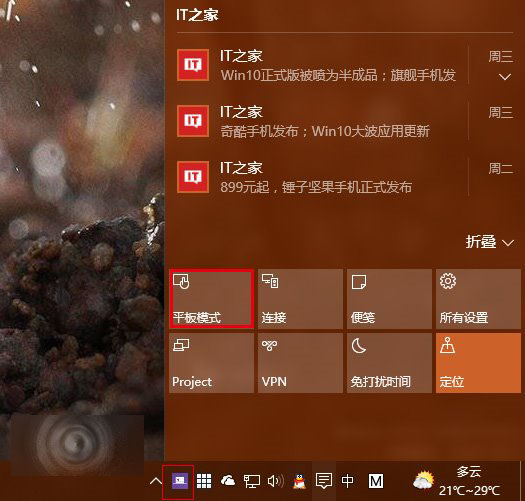 此时尝试切换平板模式,会发现任务栏自动隐藏已经生效。需要注意的是,在使用开始屏幕时,不会隐藏任务栏。
