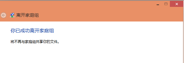 系统提示离开了家庭组后,则无法访问或共享家庭组文件夹和打印机,直接点击“离开家庭组”,如下图所示