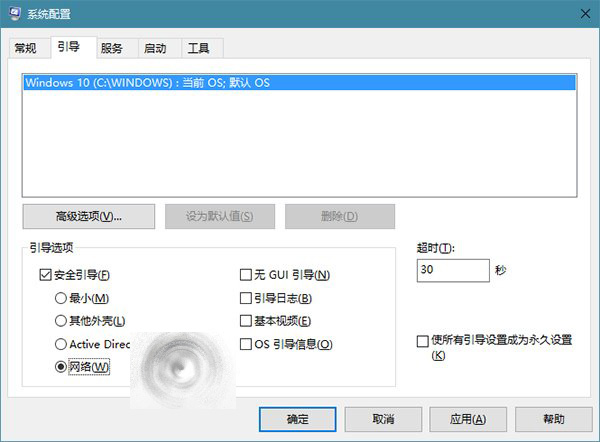 按Win+R打开运行,输入msconfig回车,切换到引导选项卡,勾选“安全引导“和”网络”,确定后重启即可。