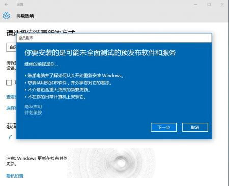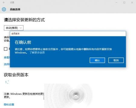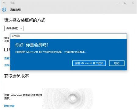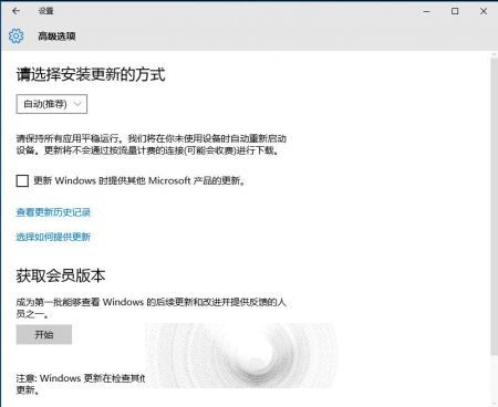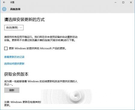 2、选择《Windows更新》下的“高级选项”,这时看到《获取会员版本》;