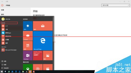 3、设置开始菜单及瓷砖的颜色