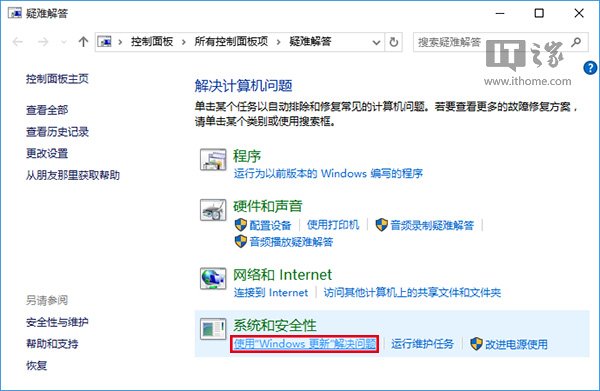 2、点击下方“使用Windows更新解决问题”