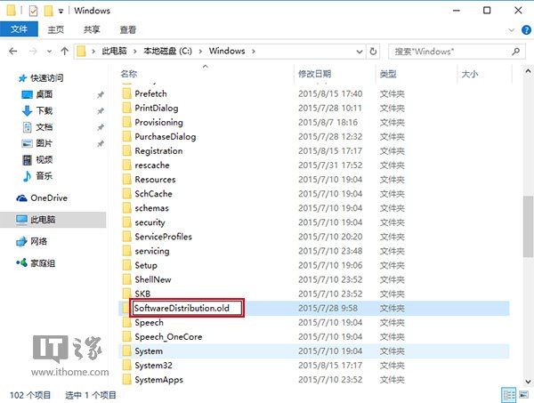 3、然后进入C:windows,找到SoftwareDistribution文件夹,并将其重命名为SoftwareDistribution.old(只要名称变了就行,不必非要是这个)