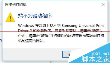 6、选择后,如果正常就会自动添加打印机了。但也会遇见这个情况,提示“找不到驱动程序”,这个时候就需要安装打印机驱动。