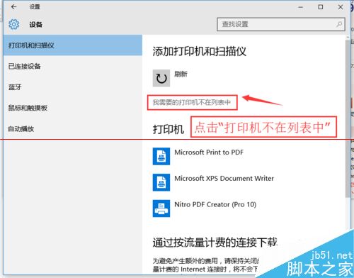 2、在弹出新窗口中,找到“添加打印机或扫描仪”。点击后会出现“正在搜索打印机或扫描仪”,这个时候稍等一下,可以看到“我需要的打印机不在列表中”。