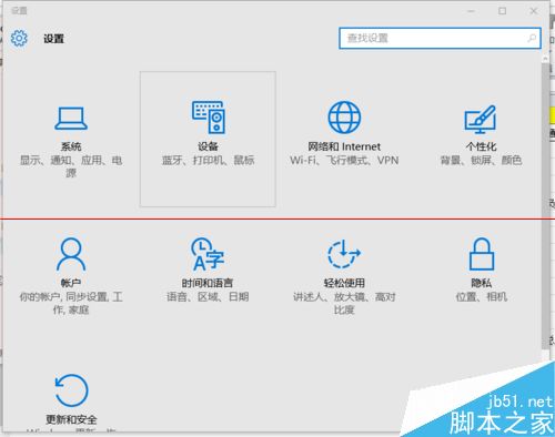 1、进入系统后,点击“开始”菜单,选择“设置”。或者输入快捷键“Win+I”进入设置界面,并点击“设备”。