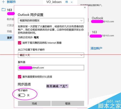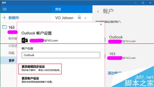 5、选择“更改邮箱同步设置 ”,然后对同步情况进行更改